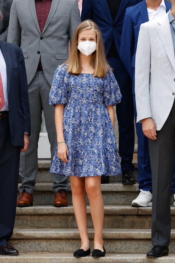 La princesa Leonor ha retomado, antes de comenzar sus vacaciones en Mallorca, una de sus citas oficiales más importantes: los premios Princesa de Girona. Tras su debut presidiendo estos galardones en 2019, el pasado año el acto tuvo que ser aplazado a causa de la pandemia, por lo que esta noche, la Princesa conmemorará a los premiados en las ediciones de 2020 y 2021. Pero antes de esa ceremonia que tendrá lugar a las 20 horas en el CaixaForum de Barcelona, la Familia Real se ha reunido con los premiados en ediciones anteriores en el Palacio Albéniz; un encuentro para el que Leonor ha elegido un look que demuestra que sigue las tendencias: un vestido de flores con mangas puffy (de Mango) combinado con unos comodísimos zapatos planos.