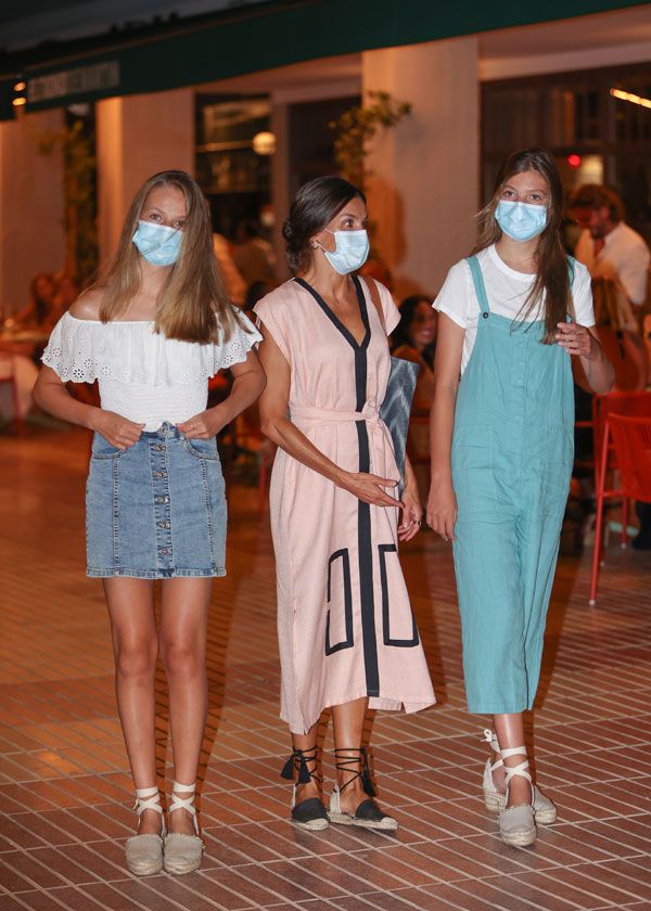 Como ya se ha vuelto costumbre en sus salidas por la isla, madre e hijas han coordinado su calzado, escogiendo las alpargatas con tiras al tobillo que tanto gustan a las mujeres de la realeza. Del mismo modo que sus hijas han reivindicado la moda low cost española en sus últimos estilismos vacacionales con diseños de Zara o Mango, la Reina ha estrenado unas alpargatas negras de suela plana en esparto con tiras al tobillo y detalle de borlas, de Oysho. A pesar de ser la primera vez que las luce, se trata de un modelo del año pasado, por lo que ya no se encuentran disponibles, aunque sabemos que en su momento podían adquirirse por 27,99 euros.
