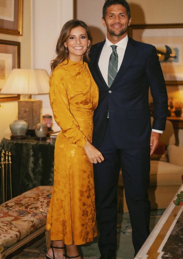La hermana menor de la Marquesa de Griñón cuenta que vivieron "una noche muy especial" en casa de su madre. Ella escogió un vestido en color mostaza, elegante y apto para los eventos de día o de noche. Se trata de un diseño de la firma Vogana que lleva forro interior. La parte superior del traje está compuesta por dos piezas cruzadas, presenta manga ranglan y cuenta con detalle de drapeado en los puños.El vestido de invitada lleva corte en la cintura, falda evasé y largo midi. Cuenta con cierre en la espalda con cremallera invisible y tiene un precio de 245 euros. Lo puedes encontrar también en color frambuesa. Uno y otro favorecen por igual a rubias y morenas.