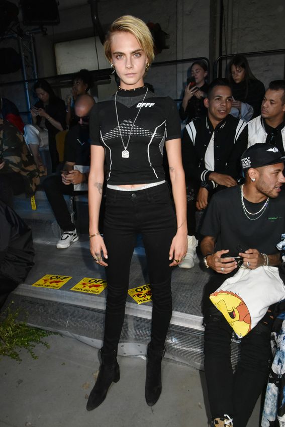 Sus últimas apariciones públicas en los front row de la pasada Semana de la Moda han demostrado, una vez más, que su estilo vistiendo es una manera más de hacer especial hincapié en la individualidad y en dejar ver su personalidad con tejidos como el cuero o el infalible color negro. El caso de la combinación que escogió para acudir al desfile de Off-White, con tintes moteros, es un claro ejemplo ya que combinaba una ajustada camiseta de la marca con unos vaqueros negros skinny que definían a la perfección la actitud de la que es ya una de las modelos más reconocidas de esta generación.