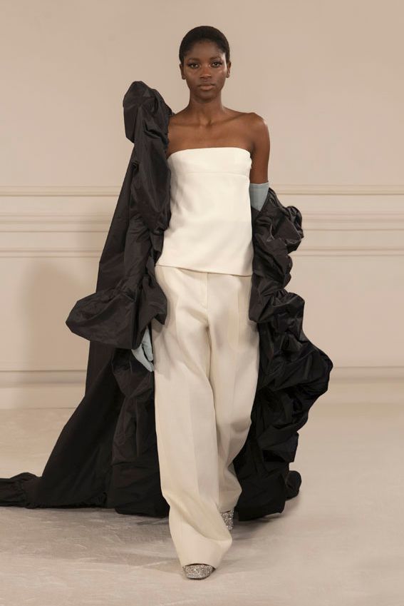 Entre las propuestas más destacadas, la colección de Valentino ha sido una de las más aplaudidas. Pierpaolo Piccioli, su director creativo, ha vuelto a crear esa atmósfera de romanticismo clásico tan característico en su trabajo. En los salones de la Place Vendôme de París y bajo la emocionante voz de la vocalista del grupo neoyorquino Antony And The Johnsons, descubrimos Anatomy of Couture, nombre de esta colección. La veterana modelo Kristen McMenamy (quien en un pasado fuera musa del diseñador Karl Lagerfeld) ha sido la encargada de abrir el desfile con un diseño corto en color negro y con un pronunciado escote que recuerda al vestido mariposa que adora la Generación Z. Este primer look ya anunciaba que la sensualidad y los detalles especiales marcarían todo el desfile.