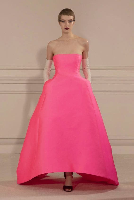 Los colores neutros como el blanco y el negro iniciales dejaban paso después a colores vibrantes como fucsia, naranja, amarillo, verde lima, azul klein o el icónico rojo Valentino. Los volúmenes, las líneas minimalistas y sencillas vuelven a ser las protagonistas en cada uno de sus diseños. Vestidos de gasa se entremezclan con trajes y vestidos de pedrería, siluetas cut-out y transparencias que hacen vibrar a los allí presentes a cada paso firme de las modelos. Y es que Valentino se carateriza por realizar diseños sencillos pero con gran magnetismo; el mismo que desprende quien se viste con una de sus piezas.