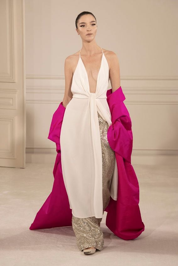 Valentino lo ha vuelto a hacer, ha vuelto a crear esa atmósfera de romanticismo clásico tan propio de él. En los salones de la Place Vendôme de París y bajo la emocionante voz de la vocalista del grupo neoyorquino Antony And The Johnsons, el director creativo de la Maison, Pierpaolo Piccioli, ha presentado su nueva colección bajo el nombre 'Anatomy of Couture'. La veterana modelo Kristen McMenamy (la que hubiera sido en un pasado musa del diseñador Karl Lagerfeld) ha sido la encargada de abrir el desfile con un diseño corto en color negro y escote pronunciado que dejaba entrever las novedades de la nueva colección. Inspirado en la silueta femenina, dota a cada uno de sus diseños de gran belleza y sensualidad. Colores neutros como el blanco y el negro dejan paso a colores vibrantes como el fucsia, naranja, amarillo, verde lima, azul klein o el icónico rojo Valentino. Los volúmenes, las líneas minimalistas y sencillas vuelven a ser las protagonistas en cada uno de sus diseños. Vestidos de gasa se entremezclan con trajes y vestidos de pedrería, siluetas cut-out y transparencias que hacen vibrar a los allí presentes a cada paso firme de las modelos. Valentino se carateriza por realizar diseños sencillos pero con gran magnetismo. Uno de los accesorios estrella en este desfile han sido los guantes, desde cortos que solo cubren la mano hasta no alcanzar ver su fin y que tapen el brazo completo. Una de las grandes sorpresas que más ha llamado la atención al público ha sido la gran diversidad de modelos presentes en el desfile. Modelos de diferentes tallas y edades, como por ejemplo una de las primeras tops españolas internacionales, Violeta Sánchez. Otro modelo español, en este caso Jon Kortajarena, ha iniciado su vuelta a las pasarelas en este mismo desfile después de un tiempo distanciado.