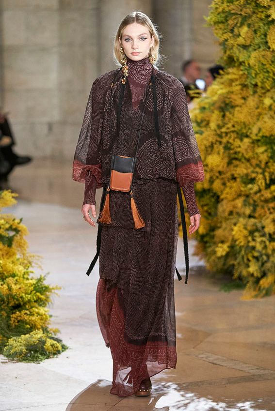Entre los espectaculares diseños atemporales destacan los vestidos de flores vaporosos, en tafetán, lana y crochet, con jerséis de mohair de cuello vuelto, faldas con volantes y chalecos en todo tipo de tejidos; todo ello acompañado con bordados y estampados étnicos exclusivos muy propios de su seña de indentidad. Un estilo femenino pero con un claro reclamo al empoderamiento de la mujer. A demás de los increíbles diseños el maquillaje ocupó un lugar importante en el desfile, la maquilladora Romy Soleimani se inspiró en Monet para maquillar a las modelos a través de llamativas pestañas y una marcada raya en el extremo exterior del párpado.