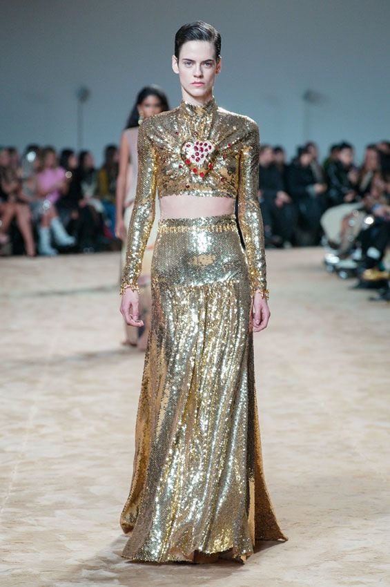 Por cliché que parezca, no existiría homenaje sin sus grandes éxitos: reproducciones del bolso Iconic 1969, fabulosos trajes de lamé con aplicaciones de pedrería, armaduras al estilo de una guerrera romana... Todo ello haciendo eco del sello Paco Rabanne en su presente, capitaneado por Dossena. Bajo su mando desde hace diez años, se ha distanciado dela estéticaSpace Agepara reivindicar ala it girl parisina de los años glamourosos años 70, una categoría en la que sin duda encajan Jane Birkin, Françoise Hardy y otras musas del diseñador español. Con sus minivestidos de lentejuelas, lenceros de flores y trajes acampanados de terciopelo acompañados con deportivas, su director creativo ha sabidoreinventar y adaptar al presente el legado de Paco Rabanne.