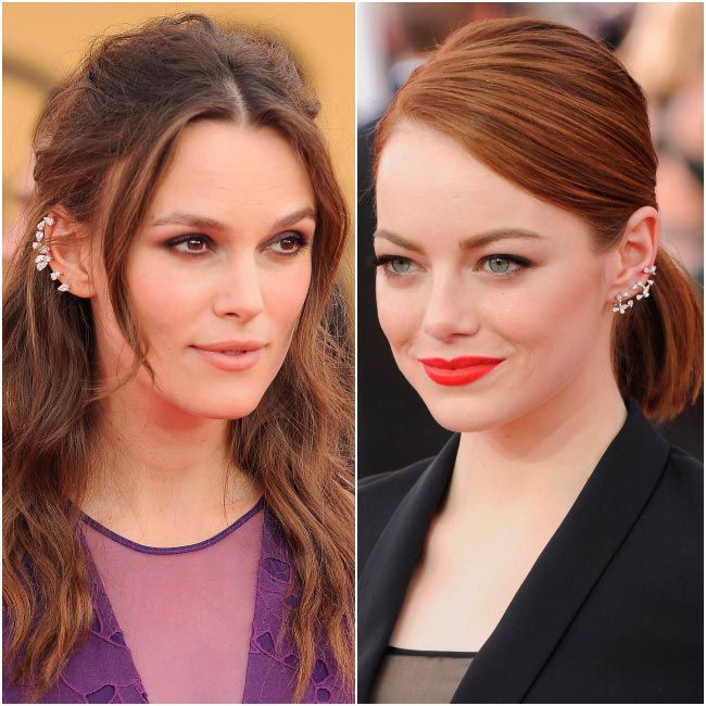 Es innegable que una de sus primeras adeptas en clave punk fue Cara Delevingne, sin embargo, una nueva tipología de pendiente en vertiente deluxe inspira a otras celebrities del momento. Es el caso, por ejemplo, de la actriz Emma Stone, quien no dudó acudir a los premios SAG con un atuendo sobrio y peinado sencillo, junto al que destacaba magistralmente un ear cuff de diamantes acuñado por Repossi. Sobre la misma red carpet veríamos a Keira Knightley con un semirecogido desenfadado que nos dejaba entrever otra joya de Repossi, un ear cuff de la colección Serti sur Vide. Sin embargo, no todas las famosas se decantan por diamantes salpicados que recorren su lóbulo. Hay quien arriesga y también gana.