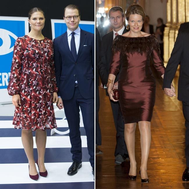 Pero ellas no han sido las únicas en caer rendidas ante el ‘burgundy’ pues, esta misma semana, tanto Victoria de Suecia como Matilde de Bélgica han optado por lucir ese tono en ‘total looks’. La primera eligió un original vestido con estrellas estampadas, de Asos, y la segunda, un vestido decorado con plumas, de Natan, y que Máxima de Holanda también guarda en su ropero en color verde.