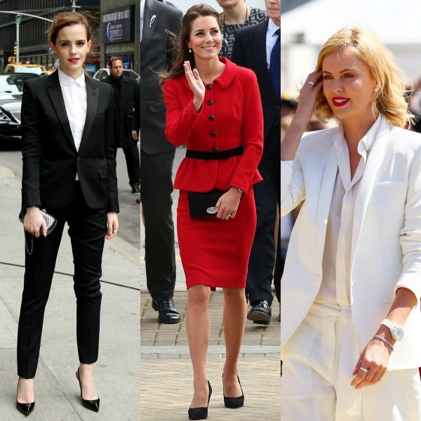 4. EL 'LOOK' MONOCOLOR ES UN ACIERTO SEGURO. A la hora de 'uniformarse', nada como un total look en un único color. Esta estrategia aparece a menudo en las series de televisión con mujeres de negocios al frente, y también entre las celebs y royals. Emma Watson se convirtió en trending topic el año pasado tras dar un discurso en las Naciones Unidas, y lo hacía con un dresscoat gris de pies a cabeza. El total look en rojo de la Duquesa de Cambridge se corresponde con su primera visita oficial a Australia y Nueva Zelanda, y recuerda al estilo de otra power dresser icónica, Diana de Gales. Y Charlize Theron, que lo apuesta todo al blanco, traje y camisa incluidos.