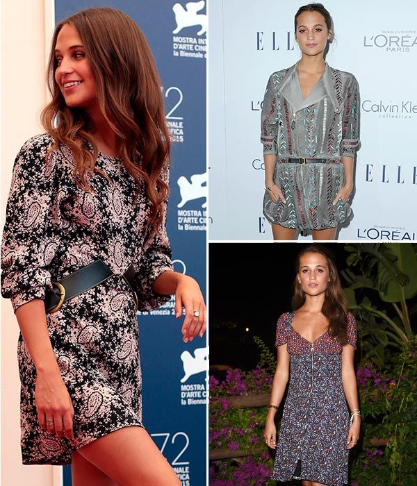 La actriz sueca no se limita a lucir 'total looks' en un único color. Para nada. Es más, en cuanto tiene ocasión apuesta por prendas estampadas, bordadas o bien con aplicaciones que simulan dibujos. Como puedes ver, en la alfombra roja Alicia sabe cómo llamar la atención. El pasado mes de enero, acudió a la gala de los premios Critics' Choice con un original vestido de Mary Katrantzou plagado de lentejuelas, abalorios y bordados. En junio del año pasado, Alicia acudió al estreno de 'Testament Of Youth' en Nueva York con un vestido largo en negro con motivos florales bordados.