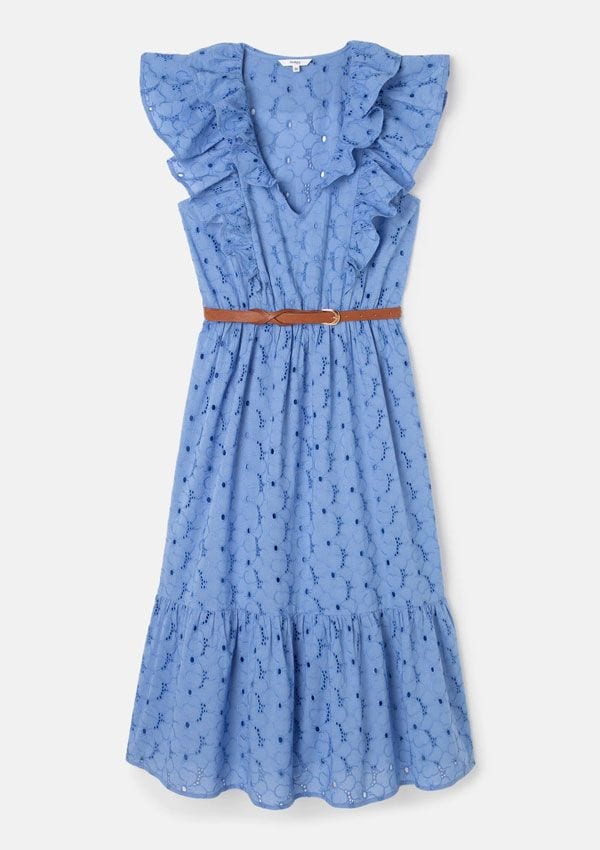 Vestido midi troquelado con volantes, de Fórmula Joven