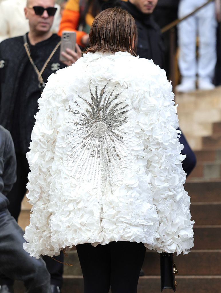 La actriz y cantante estadounidense no quiso perderse el desfile de Schiparelli Couture, con el que se inauguraba esta edición de la Alta Costura y que estuvo marcado por el retorno a la pasarela de Karlie Kloss. Para la ocasión, apostó por un look psicodélico en el que destacaba un abrigo hecho mano por el director creativo de la firma, Daniel Roseberry. Para su confección, se dispusieron uno a uno 7.000 pétalos de rosas reales. Entre sus complementos, destacaron sus surrealistas gafas de sol con montura dorada que recreaban unos ojos y unas cejas.