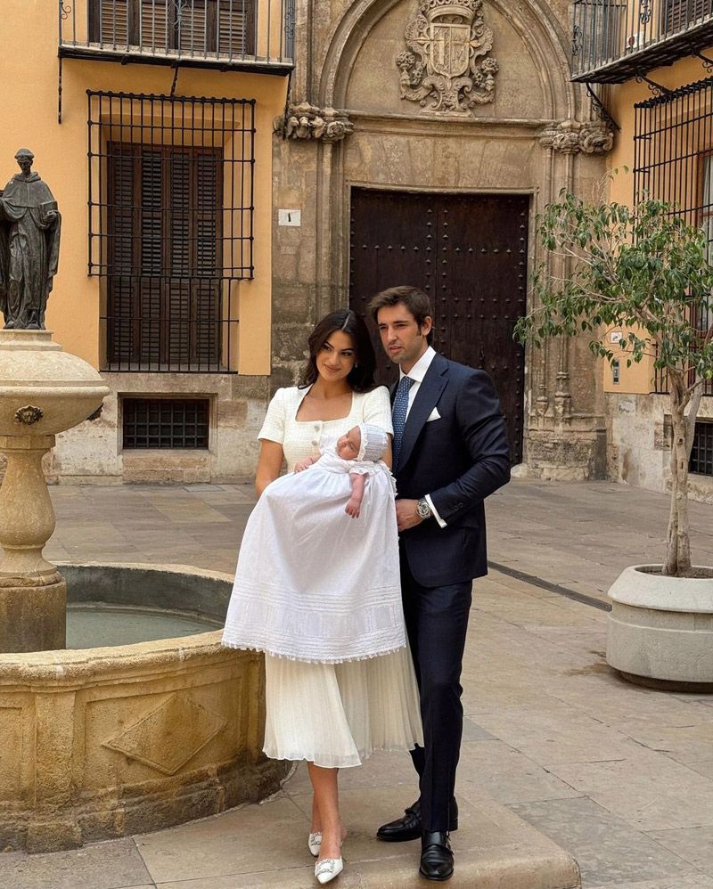 Marta ha querido coordinar su estilismo con el de su bebé, quien ha lucido un trajecito clásico de cristianar blanco con capota a juego. Aunque es habitual en ella apostar por la moda española, en esta ocasión ha puesto el ojo en una de las firmas inglesas preferidas por las royals y aristócratas británicas, Self-Portrait, con un estilismo clásico, atemporal e ideal para este evento. Se trata de una marca cuya seña de identidad son los vestidos de efecto óptico, es decir, que parecen dos piezas pero, en realidad, se tratan de una sola.