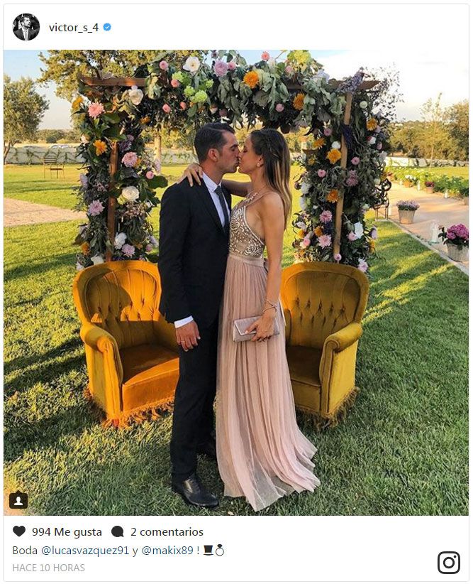 "Gracias @pilarrubio_oficial por confiar en mí y en @victoria_es_ para esta ocasión tan especial! Bella estas, bella eres!! Feliz de poder vestirte por primera vez!! #diseñoexclusivo", publicó la diseñadora dando las gracias a Pilar. "¡Que vivan los novios! @lucasvazquez91 @makix89 Sois un 🔟 por separado, pero juntos sois un 💯. ¡Enhorabuena! Os queremos", añadió Sergio Ramos felicitando a los recién casados.