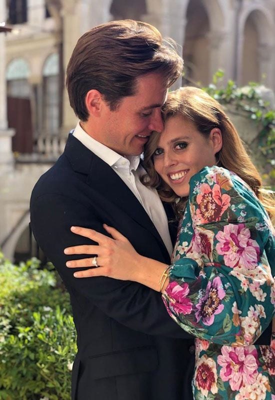 Después de varios meses de rumores la noticia se ha confirmado a través del Palacio de Buckingham: la princesa Beatriz de York y Edoardo Mapelli Mozzi se han comprometido. La información se ha dado a conocer cuando quedan unas semanas para que se cumpla el primer aniversario de la boda de Eugenia de York y Jack Brooksbank, la gran celebración royal de finales del año pasado. En las fotografías compartidas se puede ver a la pareja abrazados y sonriendo a la cámara. Beatriz, vestida con un diseño de flores en tonos rosas y verdes, muestra el anillo de compromiso en la mano izquierda. Una pieza que se puede ver con detalle en otra de las instantáneas publicadas. La joya es un diseño único ya que ha sido ideado por el propio novio, Edoardo Mapelli, en colaboración con el joyero Shaun Leane.