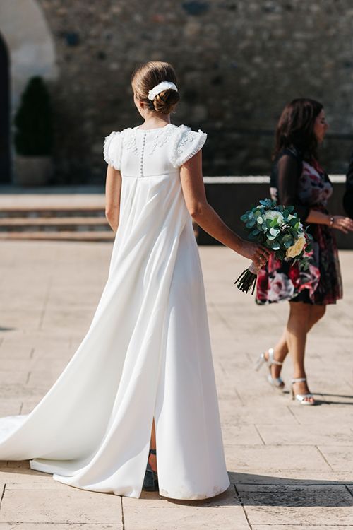Nuestra protagonista y su ya marido, Alejandro, se decidieron a celebrar un enlace diferente en Castell d’Aro, un pequeño pueblo medieval de Gerona. “Ahí, cada Navidad se celebra el Pesebre Viviente. Además, muchos de mis antepasados también se casaron en esa iglesia y yo quería ser la siguiente de la familia en casarme en ese templo, tras cien años”, nos explica. Su ceremonia religiosa tuvo lugar en Santa María de Castell d’Aro y la celebración en el Castell de Sant Gregori: “es una masía catalana fortificada cerca de Girona. Es un sueño de sitio, en medio de la Vall del Llémena, con un encanto particular”.