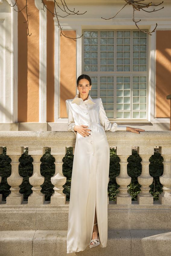 Hay ciertos detalles en los que, sin apenas pretenderlo, revelamos quiénes somos. La elección de la ropa que llevamos cada día, nuestra forma de movernos, la decoración de nuestra casa, la foto que tenemos de fondo de pantalla en nuestro móvil… Pequeñas puertas hacia el interior. Para un diseñador esa primera carta de presentación sería su atelier. Ese espacio en el que se sienten seguros y desde el que crean todas sus propuestas. El de Inés Martín Alcalde, desde el que crea sus colecciones de invitada, street wear y diseña los vestidos de sus novias, está situado en el madrileño barrio de Salamanca, apenas a unos minutos del parque del Retiro, el maravilloso pulmón de la capital por el que le gustaba correr por las mañanas antes de empezar una jornada de trabajo. Y sí, en pasado, porque ahora está embarazada de su cuarto hijo.