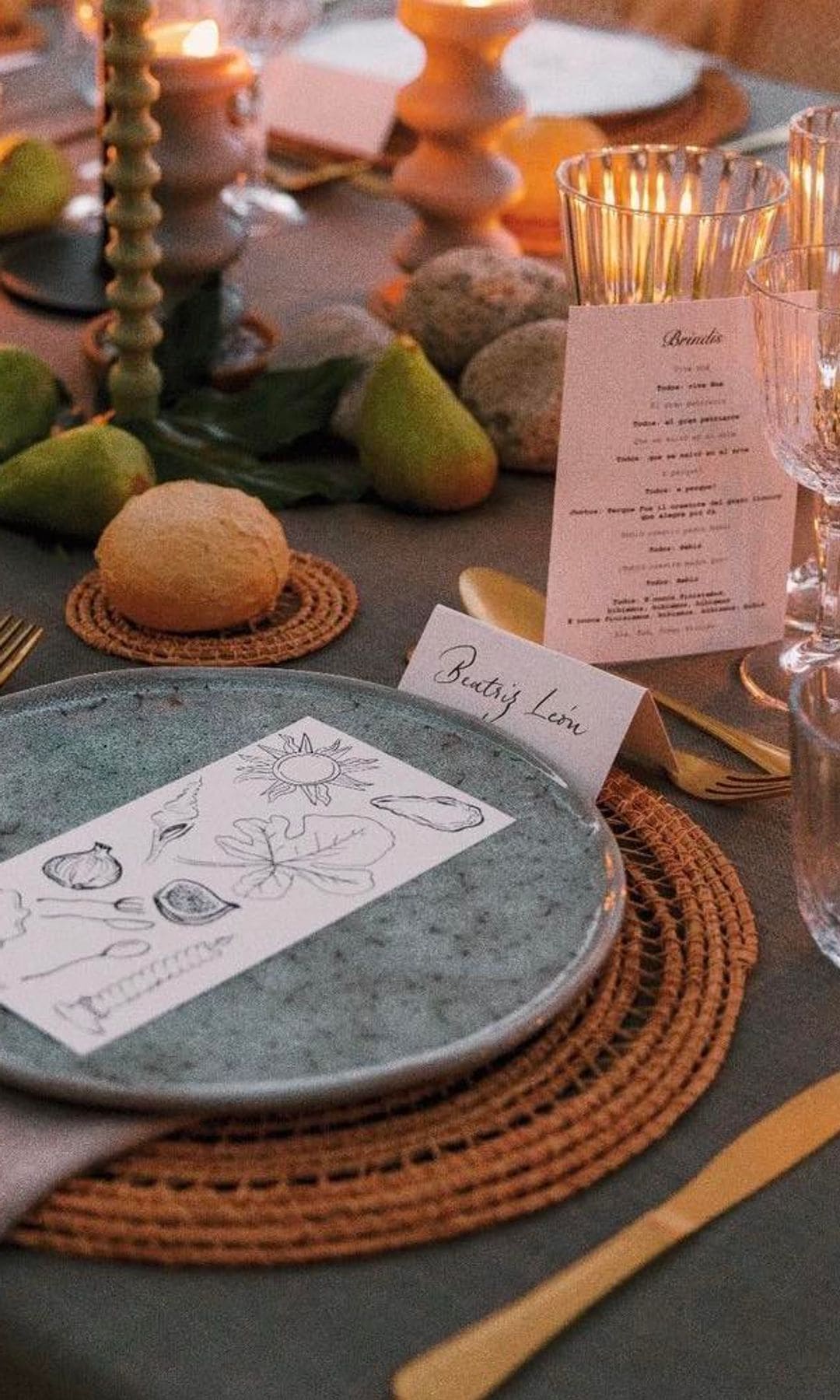 Aunque, evidentemente, lo más importante es que, como todo en la boda, la papelería les guste a los novios, es inevitable que nos dejemos influenciar por las tendencias actuales, porque es lo que vemos en redes o en otros enlaces a los que acudimos. Si hace unos años lo que más se buscaba era la elegancia atemporal, con tonos sencillos y caligrafías clásicas, hoy la cosa ha cambiado mucho. "Estamos viviendo un momento muy divertido en cuanto a papelería, casi como un juego. Se llevan mucho las ilustraciones naif que hablen de la mesa o de la decoración, la escritura casi infantil o no tan perfecta, las frases románticas, jugar con formas diferentes (minutas ovaladas, con formas de ondas)… En invitaciones, el papel artesanal sigue estando en la cresta de la ola, igual que las invitaciones caligrafiadas en lugar de con letra de imprenta. Y el lacre, que tiene sus defensores y sus detractores, se lleva" explica Rocío.