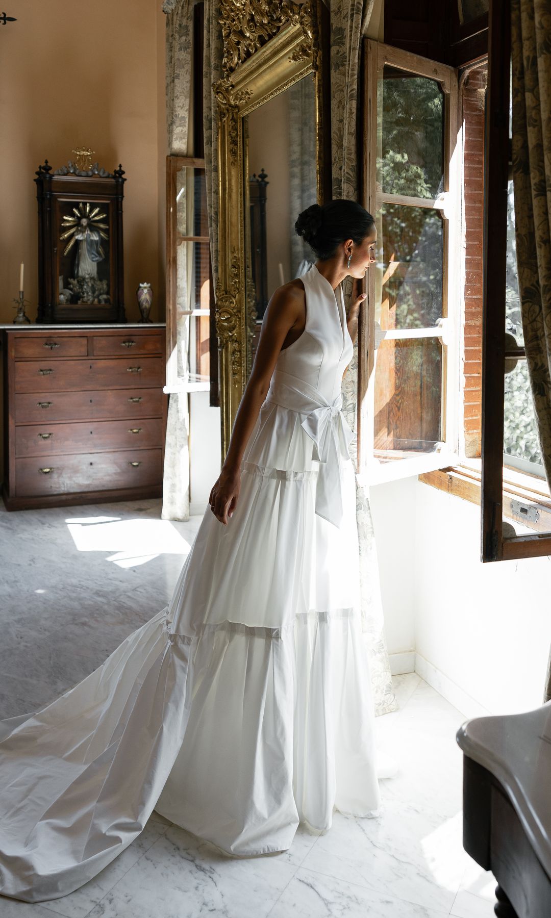 Basta hacer un repaso por las colecciones de algunos creativos para confirmar que los lazos siguen teniendo protagonismo en las espaldas. Diseñadoras como Amsale Aberra, María Baraza o Isabel Sanchís los incluyen en la zona trasera de los vestidos y, cuando lo hacen, casi siempre apuestan por opciones más bien estructuradas y de gran tamaño. Aunque en la colección para 2025 de la española también los hemos visto fluidos y no meramente decorativos, como los que cierran capas.