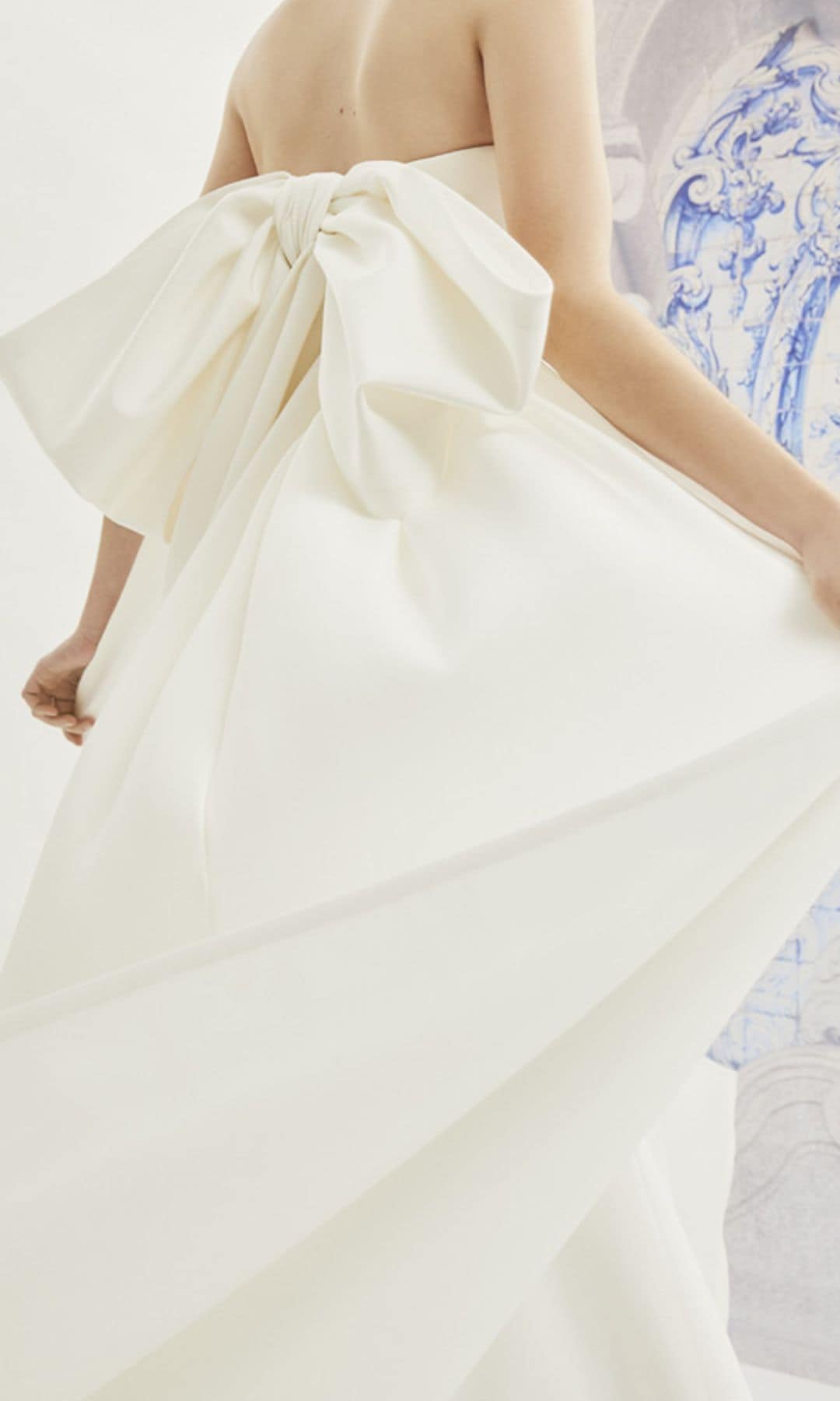 Pero hablar de lazos y moda nupcial, como adelantábamos al principio, es hacerlo de Carolina Herrera. La diseñadora introdujo de forma natural estos elementos decorativos en sus colecciones, logrando propuestas llenas de romanticismo y haciendo de ellos su seña de identidad. La creativa no solo los utilizaba como un elemento estructural y decorativo, también para lograr un buen equilibrio entre lo clásico y lo actual. Por ejemplo, un vestido tradicional puede incluir un lazo sobredimensionado en la espalda, aportando dramatismo. También se atrevió a incluirlos en tonos diferentes al blanco. Una estética que Wes Gordon ha querido conservar en algunas de sus propuestas.