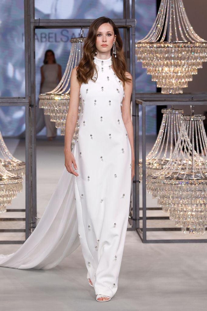 Posicionada como una de las firmas veteranas —llevan 16 años desfilando en esta pasarela— la firma valenciana ha presentado una propuesta cargada de fuerza en la que la representación de distintos estilos de novias marcaba el eje de la colección. Y es que hay un poco de todo: desde vestidos mini con juegos de hebillas, hasta piezas con microplisados manuales rematados con delicados encajes y vestidos con flores tridimensionales. Además, esta temporada han dado un paso más al reinterpretar su elemento insignia: la flor. La han realizado con efecto 3D y de forma artesanal, dando así un efecto delicado y único para cada novia.
