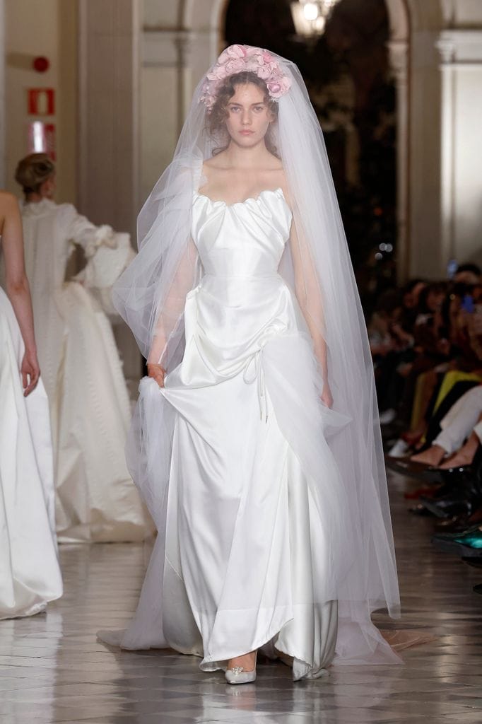 El Claustro de la Universidad de Barcelona, un edificio con más de 150 años de historia y un referente de la arquitectura catalana del siglo XIX, se convirtió anoche en el escenario de uno de los desfiles más esperados de esta edición de Barcelona Bridal Fashion Week, el de Vivienne Westwood. No es la primera firma internacional que elige la ciudad Condal para presentar sus propuestas en lo que se conoce como Barcelona Bridal Night, uno de los eventos más especiales de esta pasarela —Elie Saab, Giambattista Valli o Viktor & Rolf, entre otros lo hicieron antes—, pero sí una de las más disruptivas.
