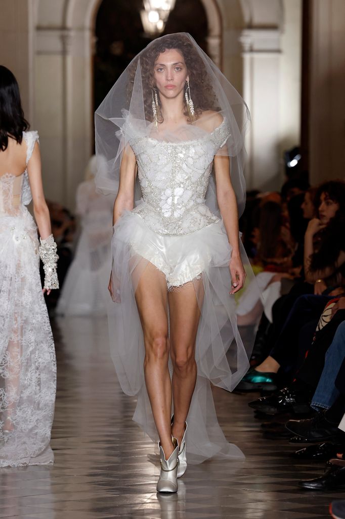 Andreas Kronthaler, viudo de Vivienne Westwood, es el actual director creativo de la firma. Desde que la diseñadora falleció en 2022, él se ha encargado de mantener ese aire punk tan característico no solo de sus diseños, también de su forma de presentarlos y acercarse al público. Tal vez por eso que él cerrara el desfile vestido de novia, aunque nadie lo hubiera esperado, representa perfectamente la esencia de la casa. También sus modelos, entre las que estaban Lorena Durán o Guiomar Alfaro, que a sus más de 50 años, sigue arrasando sobre las pasarelas. Y la italiana Simonetta Gianfelici, que ya cumplió los 60.
