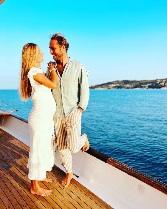 James y la Aluzze, que trabaja como financiera y analista en la consultora inglesa ITG, en la City de Londres, comenzó en 2018 cuando se conocieron en un bar de South Kensington (Londres), aunque su relación no salió a la luz pública hasta Año Nuevo cuando fueron fotografiados besándose en San Bartolomé. Vivieron su historia de amor con una gran discreción hasta que en octubre de 2019, el hermano de Kate Middleton confirmaba su compromiso con un escueto y elocuente mensaje: "Ella ha dicho sí". La boda llegó en septiembre de 2021 con la espectacular Costa Azul como telón de fondo y en una ceremonia íntima a la que acudieron los príncipes de Gales.