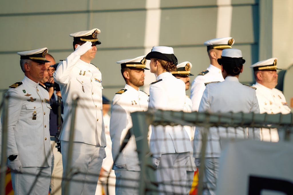 Tras salir del vehículo que le había trasladado hasta puerto, la veíamos caminar primero con paso firme y con la ilusión que reflejaba su rostro en un momento clave como este. Era entonces cuando la número uno en la línea de sucesión subía primero la escalinata que daba al acceso al barco, vestida con el uniforme de guardiamarina de la Armada.