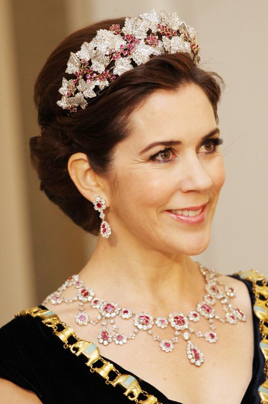 De las cuatro tiaras que ha llevado Mary de Dinamarca hasta ahora hay una que sobresale por su gran valor económico, histórico y sentimental. La tiara de rubíes que fue testigo de la coronación de Napoleón el 2 de diciembre de 1804 en la Notre-Dame, París, y que la reina Ingrid (madre de Margarita II) legó a su nieto Federico, para que este, entonces un príncipe heredero que todavía estaba soltero, pudiera cedérsela a su mujer algún día.
