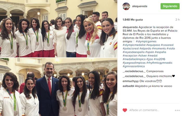 Los Reyes felicitando a la nadadora Mireia Belmonte, que logró en los Juegos de Río 2016 un triunfo histórico para España al ganar la medalla de oro en 200 metros mariposa haciendo un tiempo de 2,04.85