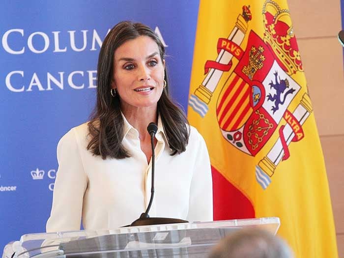 Con camisa y falda plisada y de nuevo de blanco, como comenzó su agenda en Nueva York, doña Letizia ha conocido de cerca los trabajos que los científicos de nuestro país realizan en Norteamérica. Para ello se ha desplazado hasta el prestigioso centro universitario neoyorkino para asistir al Día Mundial de la Investigación en Cáncer, donde ha coincidido con la esposa de Joe Biden, también de blanco, en una cita sin precedentes que reunirá a todos los organismos internacionales que luchan contra esta enfermedad. En el acto se ha hablado sobre la importancia de seguir investigando y de hacerlo todos juntos, en la misma dirección y como un solo equipo.