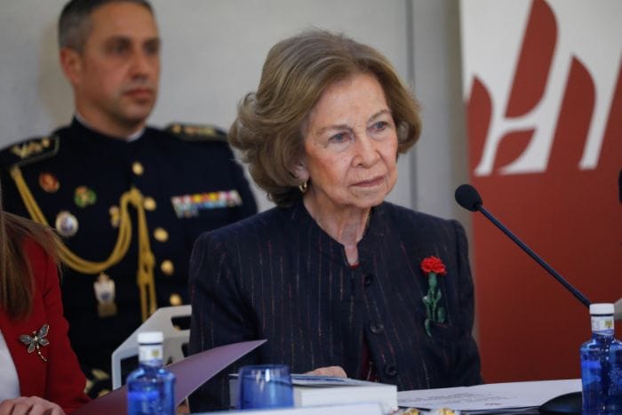 La reina lucía un clavel rojo en la solapa de su chaqueta en lo que parece un guiño a uno de sus restaurantes preferidos en Burgos: 'Los Claveles'. Hace ahora un año, al terminar la reunión con el Patronato de la Fundación, doña Sofía disfrutó de una comida con los patronos en este local de comida tradicional de Ibeas de Juarros que, según se supo entonces, había visitado de manera privada en otras ocasiones porque le gusta mucho. En este mítico restaurante se puede degustar diversos platos de la cocina tradicional burgalesa como la morcilla de Burgos, la cecina curada o unas mollejas de lechal.