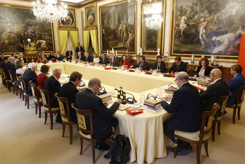 Entre los asistentes a la sesión se han encontrado además del presidente del Gobierno, Pedro Sánchez, quien es también presidente ejecutivo del patronato, los ministros de Asuntos Exteriores, José Manuel Albares; de Educación, Pilar Alegría, y de Cultura, Ernest Urtasun. También han acudido el secretario de Estado para Iberoamérica y el Caribe y el Español en el Mundo, Juan Fernández Trigo; el premio Cervantes 2023, Luis Mateo Díez; la escritora y profesora Estrella de Diego; el secretario general de la Comisión Permanente de la Asociación de Academias de las Lengua Española, Francisco Javier Pérez Hernández; el presidente del Instituto de España, Eduardo Díaz-Rubio, el presidente de la Academia de Cine, Fernando Méndez- Leite y el director del centro cultural inca Garcilaso (Perú), Hernando Torres-Fernández.