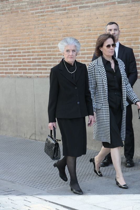 Simoneta, que ha llegado junto a dos de sus tres hijos, María de las Mercedes y Pablo Fernández-Sastrón (nacidos durante su matrimonio con José Miguel Fernández-Sastrón, también presente), ha estado inicialmente a las puertas del templo saludando a algunos miembros de la iglesia y a los asistentes que tanto apoyo están dando a la familia en este duro trance. Entre ellos, Carla Royo-Villanova con su hijo Mirko, Cristina de Borbón-Dos Sicilias con Pedro López-Quesada, Pedro de Orleans, Piru Urquijo y Teresa de Borbón-Dos Sicilias, prima de don Juan Carlos y las infantas Pilar y Margarita, quien ha llegado con su hija Beatriz Moreno y Borbón. Es la primera aparición de la familia directa de Teresa Urquijo tras su enlace con el alcalde de Madrid.