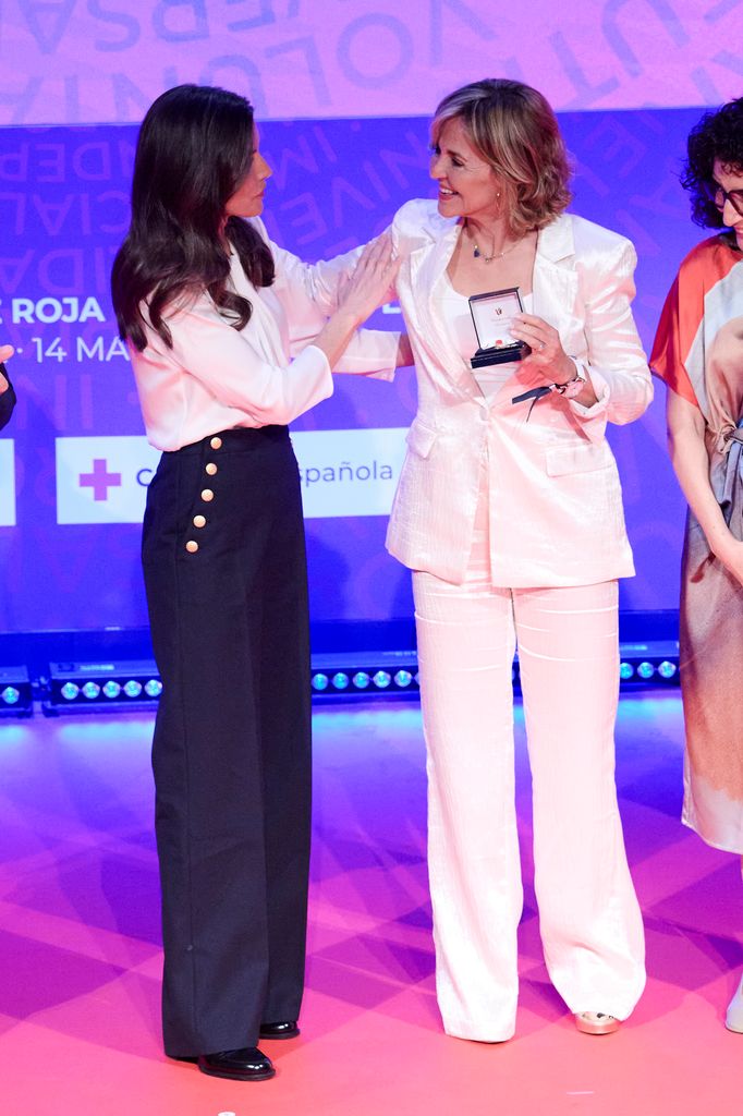 Antes de poner rumbo al Vaticano para estar en la misa de inicio de pontificado de León XIV, Doña Letizia se ha trasladado este miércoles al Teatro Romea de Murcia para presidir el acto principal del Día Mundial de la Cruz Roja y de la Media Luna Roja. Una cita en la que se han entregado las Medallas de Oro a personas u organizaciones que han conseguido con su trayectoria tener un gran impacto socia, como Almudena Ariza, a la que han dado esta condecoración "por su defensa del rigor en la información y la cobertura de crisis humanitarias y conflictos armados desempeñada en los últimos 20 años".
