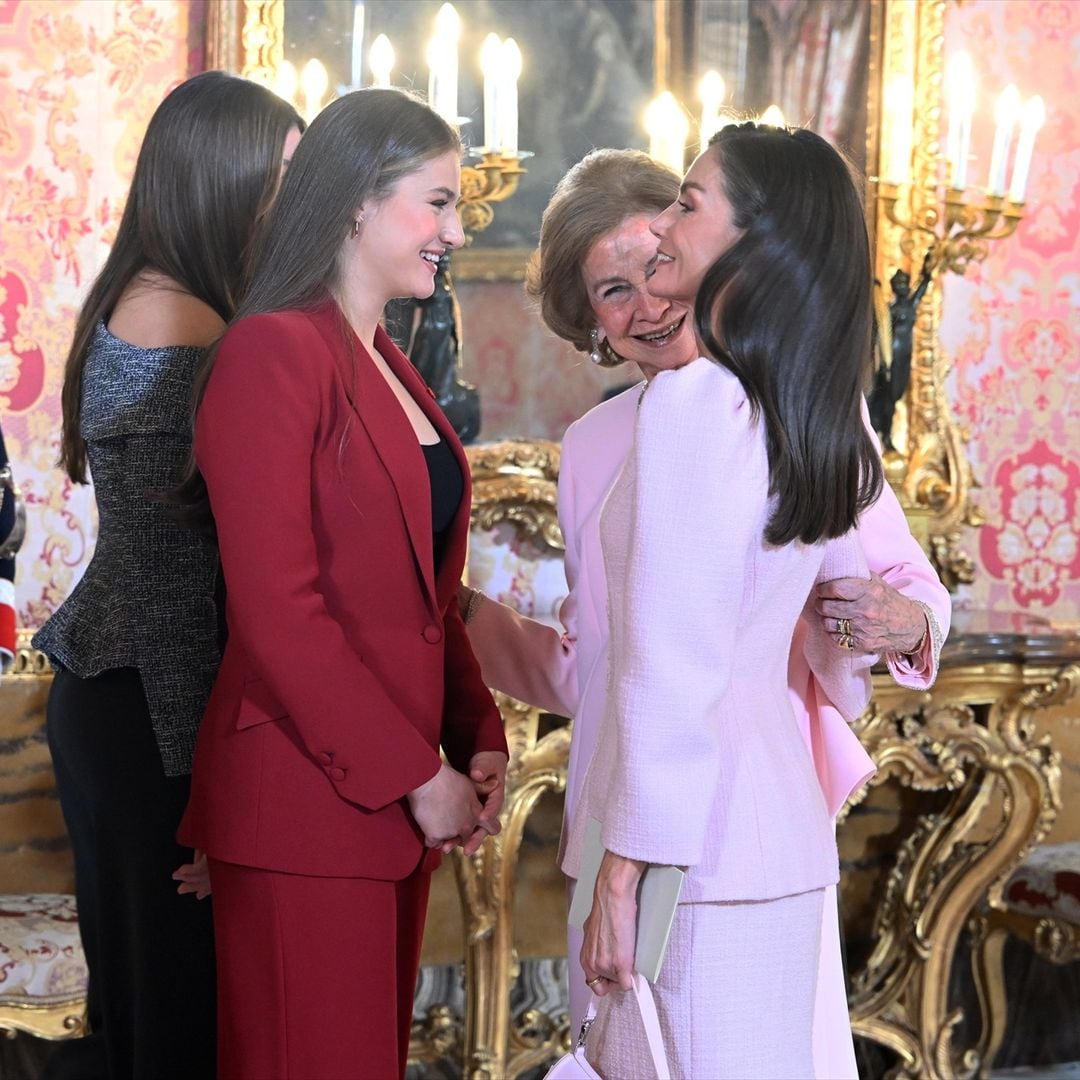 La distribución de esta instantánea se produce a 13 días del 25 de diciembre y tras el gran homenaje a la reina Sofía, celebrado el 21 de noviembre en el Palacio Real. Ese día, doña Sofía recibió la máxima distinción de la monarquía, el Toisón de Oro, de manos de su hijo, Felipe VI, y ante la mirada de amor profundo amor de su nuera, doña Letizia, y sus nietas Leonor y Sofía.