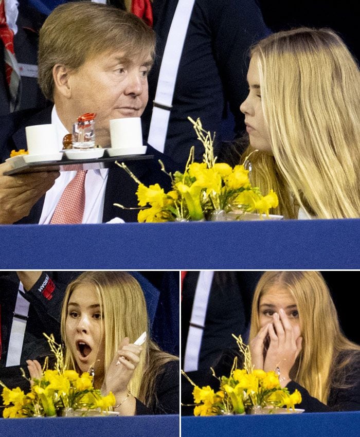 El soberano se lo pasó en grande junto a la Princesa de Orange, la más parecida a él de sus tres hijas, durante la final de saltos en el Palacio Rai de la capital. La princesa Amalia, que no pudo asistir a la cita en una ocasión anterior, cuando sus hermanas acompañaron a sus padres hace cuatro años, se ha resarcido finalmente disfrutando en todo momento de la emocionante competición de este año, tal y como habría hecho la reina Máxima. Como ella, fue toda sonrisas a su llegada y toda emoción en el palco real, en el que también se encontraban la princesa Irene, tía del rey Guillermo, y la princesa Margarita, anfitriona como parte del equipo responsable de la organización del certamen, junto a su familia.