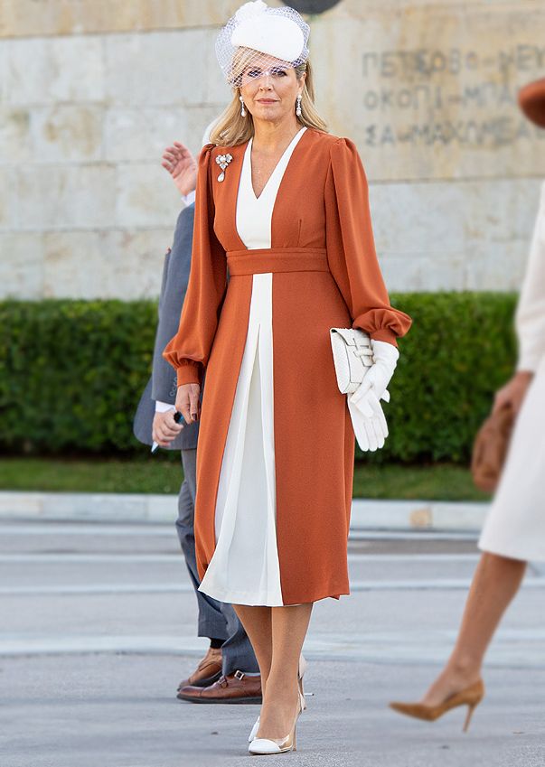 Máxima lo ha vuelto a hacer. La Reina de los complementos y los looks más llamativos ha causado sensación a su llegada a Atenas, donde ha iniciado su visita de Estado de tres días junto al rey Guillermo Alejandro. La soberana hizo un guiño al país luciendo un elegante vestido bicolor de la firma griega Zeus+Dione (corresponde a la colección Resort 2022) y llamó especialmente la atención por los accesorios con los que lo combinó.