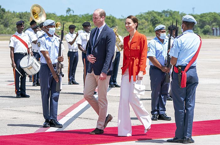 Los duques de Cambridge comenzado este martes 22 de marzo la segunda parte de su gira por el Caribe con motivo del Jubileo de Platino de Isabel II, que celebra este año sus siete décadas en el trono británico. Procedentes de Belice, el príncipe Guillermo y la duquesa de Cambridge aterrizaron en Jamaica en torno a las dos y media de a tarde (hora local), y nada más bajar la escalerilla del avión de las Fuerzas Armadas británicas en el que viajaron, saludaron a los dignatarios. La ex Miss Mundo Lisa Hanna, del Partido de la Nación del Pueblo, el líder de la oposición, Mark Golding, la senadora Kamina Johnson Smith y el jefe del personal de defensa, el contraalmirante Antonette Wemess Gorman, les esperaban a pie de pista en el aeropuerto internacional Norman Manley en Kingston, la capital del país.