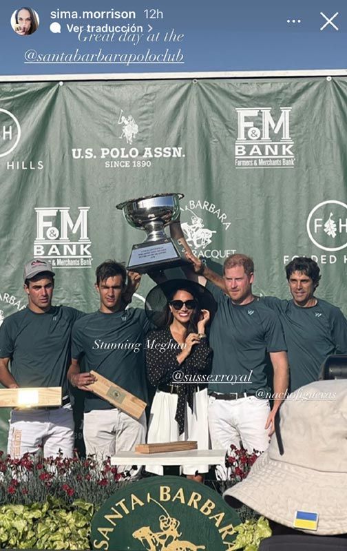Los Duques y el equipo Los Padres, en el que juega el Príncipe junto a su gran amigo, el polista profesional Nacho Figueras, fueron los encargados de organizar este encuentro en apoyo de causas locales como Foodback Santa Barbara County, Heal the Ocean y CALM4kids. Sin perderse un detalle de esta cita estuvo Meghan, una más entre el público, que llevaba un conjunto muy veraniego de falda blanca y una fina blusa en tono oscuro con lunares blancos -recordó al look que en su día llevó Diana de Gales en una cita de las mismas características y también con beso incluido al príncipe Carlos-. Para protegerse del sol, Meghan se cubrió con una pamela también en tono oscuro. La pareja, que desarrolla una intensa labor solidaria a través de su fundación Archewell, se volcó en esta ocasión con algunas de sus causas predilectas como la salud mental, el medio ambiente y proporcionar alimentos a las personas más necesitadas.