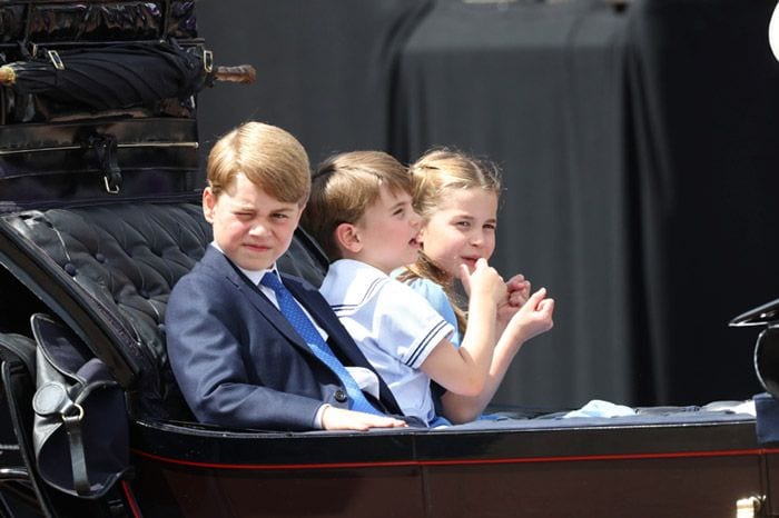 George, Charlotte y Louis, de ocho, siete y cuatro años, han ido con su madre y también con Camila, duquesa de Cornualles, y se han mostrado de lo más formales, saludando a todos los que se encontraban a su paso. El suyo ha sido el primer carruaje en salir desde Buckingham, dando comienzo al acto que ha inagurado las celebraciones del Jubileo de Platino.