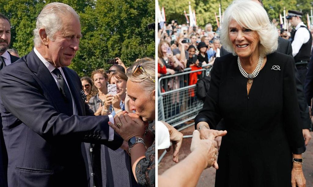 Las multitudes estallaron con gritos de “¡Dios salve al Rey!” mientras sonaba el Himno Nacional y el estandarte real se izaba sobre el palacio de Buckingham por primera vez en su reinado. A las puertas del que fue el hogar de la Reina, cientos de tributos de flores —imposible no recordar los días de duelo por la princesa Diana, fallecida hace veinticinco años—, que el monarca quiso ver en su primer paseo de Rey, de quince minutos, seguido por su mujer, que estaba al borde de las lágrimas. Sonó entonces una corneta e hicieron su entrada en Buckingham por la puerta principal del palacio.