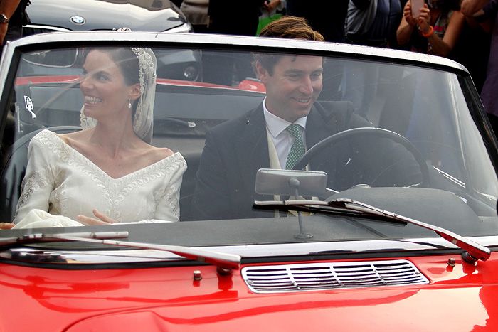 La novia ha hecho su esperada entrada rumbo al altar cogida del brazo de su padre, que vuelve a ejercer de orgulloso padrino, bajo la atenta mirada de todos los invitados. Astrid ha apostado por un estiloso vestido con escote, bordados en zig-zag y una larga cola que coronaba con la tiara de la casa de Liechtenstein, Kinsky Honeysuckle. Está hecha con diseño de madreselva en diamantes, plata y oro, rodeados por un halo de diamantes, y data del siglo XIX. Tras el mejor momento: el del 'sí, quiero', los novios, ya convertidos en marido y mujer salían del templo entre los aplausos de los invitados, que un día antes ya habían disfrutado de una fiesta preboda en la que no faltó la diversión y de la que fue testigo entre otros la española experta en moda Inés de Cominges, que acudió junto a su marido François du Chastel. Tras la ceremonia, les esperaba otra gran fiesta a la que los novios se dirigieron en un espectacular descapotable rojo conducido por el propio Ralph.