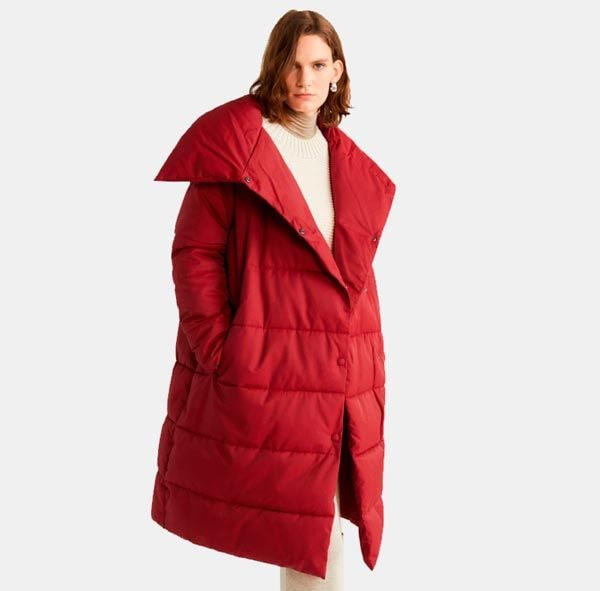 El color rojo es uno de los colores estrella de cada temporada y, especialmente en invierno, uno de los que más favorece. Este plumífero de Mango, de largo hasta las rodillas, incluye además un diseño muy elegante con botonadura lateral y cuello asimétrico.