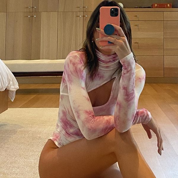 Pero, sin duda alguna, una de las prendas clave de la colección (que planea agotarse antes que ninguna otra) es este body con estampado tie dye que Kylie Jenner lleva en la foto. Tiene las características de un body al uso salvo por la original e inigualable abertura que sorprende en la parte superior. La empresaria lo lleva en tonos marrones y naranjas pero si buscas uno más sutil, sigue bajando y averigua cuál es la versión de Kendall.