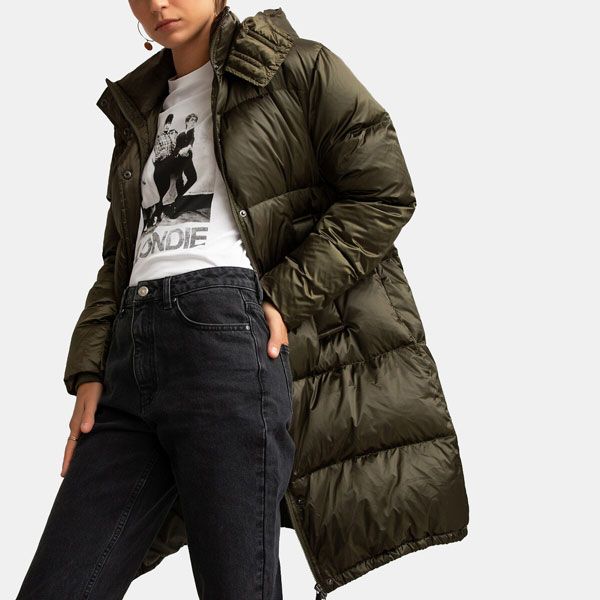 En una línea similar encontramos este abrigo de La Redoute Collections, que mantiene el corte con largo a la altura de las rodillas, cremallera frontal, capucha y cuello alto. En este caso, sin embargo, se trata de una pieza en color verde caqui, para esas mujeres que quieren romper con el negro sin arriesgar demasiado. Con relleno mezcla de plumón y plumas, su acabado efecto perlado añade un extra de sofisticación a la pieza, convirtiéndola en la opción más acertada para tus looks menos informales.