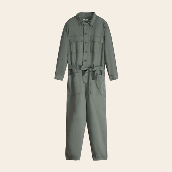 Este mono que, como el anterior, es de color caqui pero lleva manga sisa es increíblemente versátil. Si te lo pones con un top al tonoy unas sandalias o cuñas, quedará de maravilla. También lo puedes llevar con jersey de punto fino y cuello cisne y unos botines a juego. Lleva cintura ajustable así que tienes la posibilidad de llevarlo más suelto o más ceñido en función de tus preferencias. En definitiva, se trata de un mono atemporal para toda la vida.