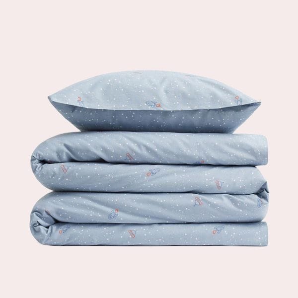 Clásica y bonita donde las haya, esta delicada funda nórdica con estampado espacial es ideal para la habitación de cualquier niño. Le gustará a ellos, pero también a ti. Con estampado de cohetes y naves espaciales, además de contribuir a que los sueños de los más pequeños sean buenos, esta funda está pensada para cuidar del mediomabiente. Está confeccionada en 100% algodón sostenible, lo que asegura un uso responsable del algodón. Se realiza en colaboración con Better Cotton Initiative (BCI), una organización sin ánimo de lucro que representa los estándares mundiales para un algodón mejor.