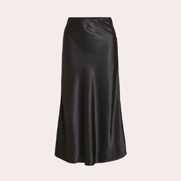 Independientemente de los estampados y tejidos que sean tendencia, las faldas satinadas son siempre un acierto. Más especialmente si se trata de un diseño negro de largo midi como este de Vila. Una prenda todoterreno confeccionada en un tejido de poliéster y elastano, cuyo corte ligeramente acampanado resulta muy favorecedor.