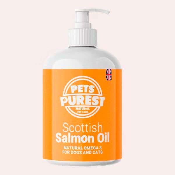 Repleto de ácidos grasos esenciales Omega-3 y Omega-6, derivados de EPA y DHA, este aceite de salmón premium fomenta mantos de pelo suaves y contribuye a la salud general del perro o gato.